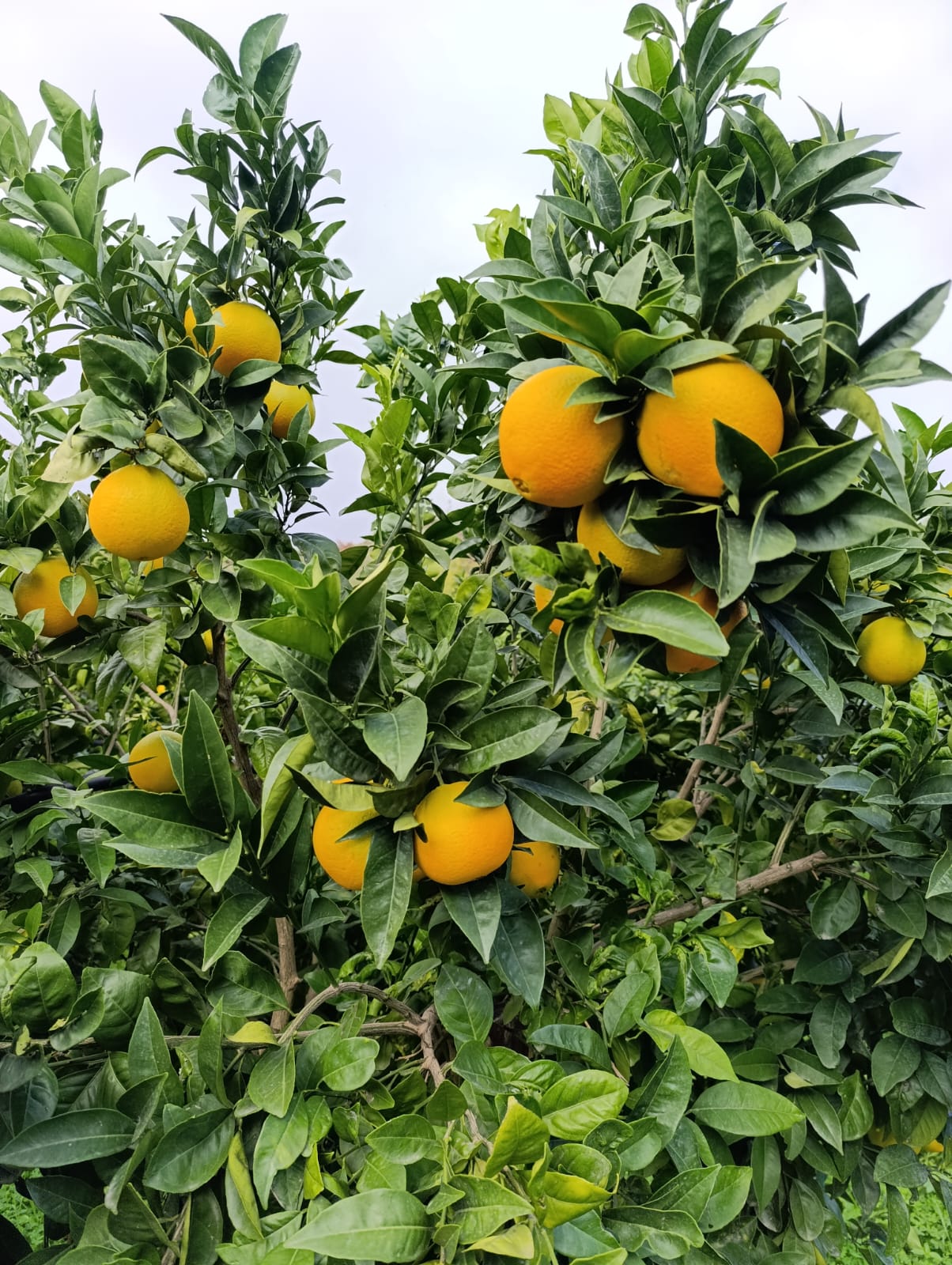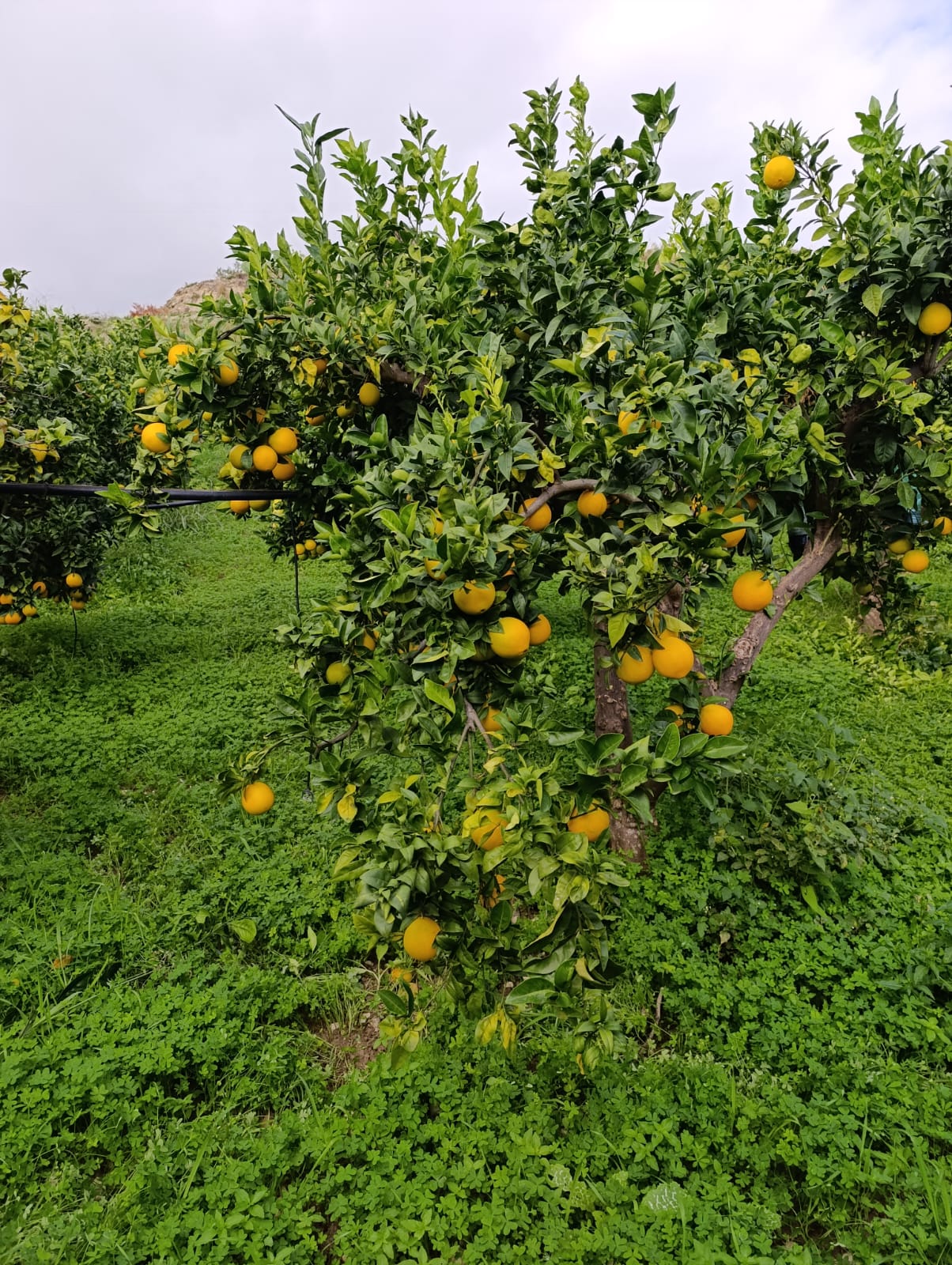 La Navel (nombril) se reconnaît à son nombril marqué, l'absence de pépins, sa belle taille, et qu'est-ce qu'elle est gorgée de jus! Il s'agit de la "Bionda di Ribera", une navel sans pépins et très savoureuse. La campagne de récolte commencera cette année mi-décembre 2023 et durera jusque fin février/début mars 2024. Les variétés de navel changent au fur et à mesure de la saison, les premières expédiées sont les "navellina" (plus petites) puis on passera progressivement aux "brasiliane". Les oranges sont non traitées, seuls des pièges à phéromones (de petites bouteilles) sont disposées ça et là dans le verger pour attirer les mouches mâles. Pas de pesticides, pas de fongicides, pas de paraffine.